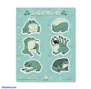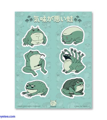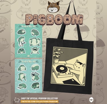 Here is the latest collection at The Yeteemart, showcasing merchandise from your artist Pigboom. If you share our enthusiasm for frogs and cats, this new lineup will resonate with you. With its weird and creepy representation of frogs, the collection is sure to capture the hearts of many(LOL)! From creepy sticker sheets to a stylish tote bag, we've got something for every frog and cat lover.